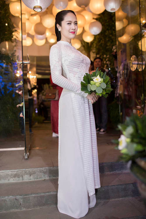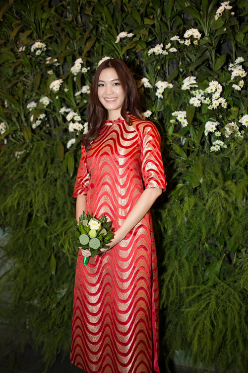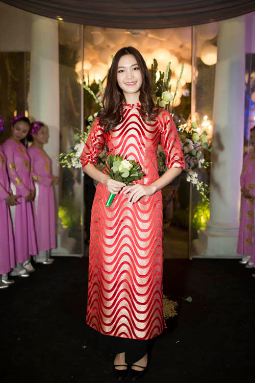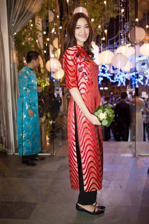 Xuất hiện tại buổi tiệc, cả hoa hậu Thùy Dung và diễn viên Thanh Thúy đều chọn trang phục áo dài để phù hợp với không khí của sự kiện. Trong khi hoa hậu Thùy Dung chọn bộ áo dài đỏ với phom dáng xuông cổ điển thì Thanh Thủy lại dịu dàng, nền nã với áo dài trắng muốt.