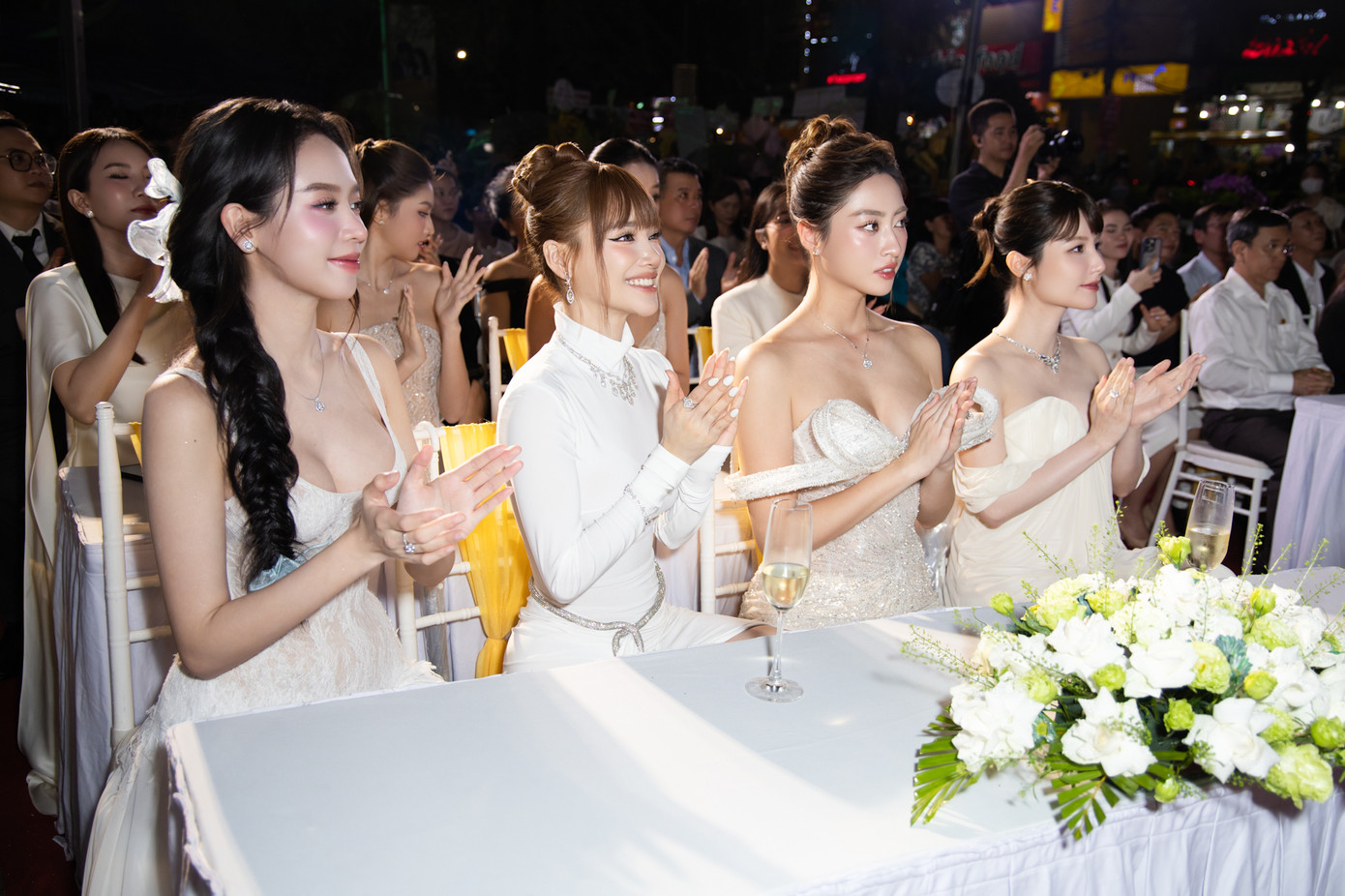 | Trước khi sang Nhật Bản tham dự Hoa hậu Quốc tế, hoa hậu Thanh Thủy tham dự sự kiện ở Cần Thơ. Người đẹp diện váy ren cúp ngực màu trắng ngọt ngào. Cô trang điểm theo phong cách nhẹ nhàng, trong sáng. |