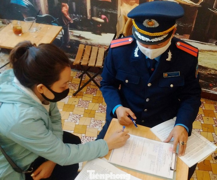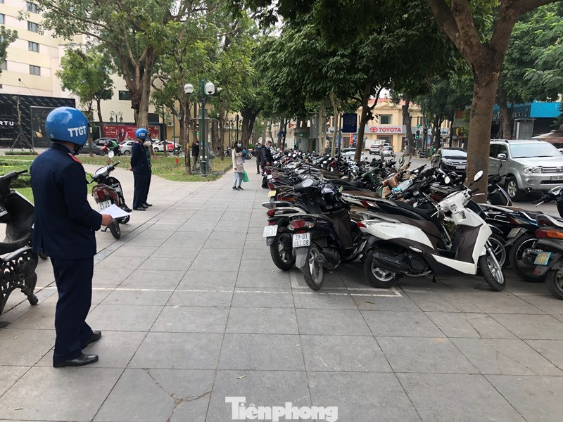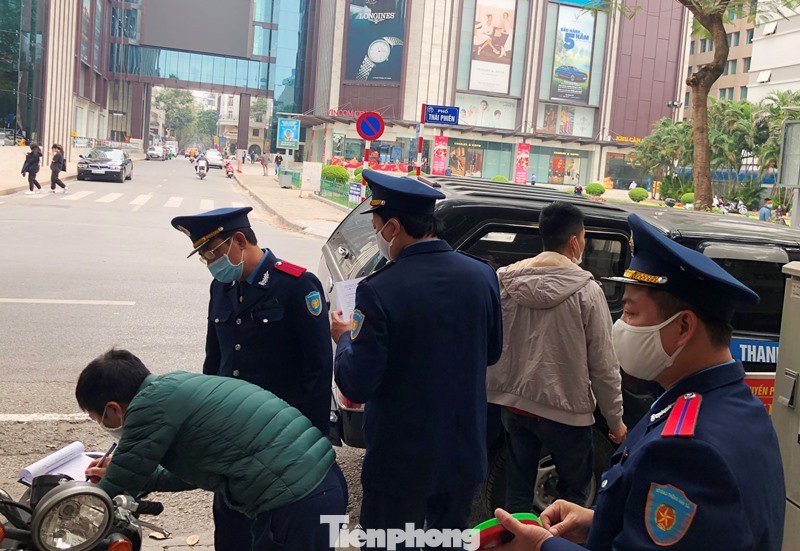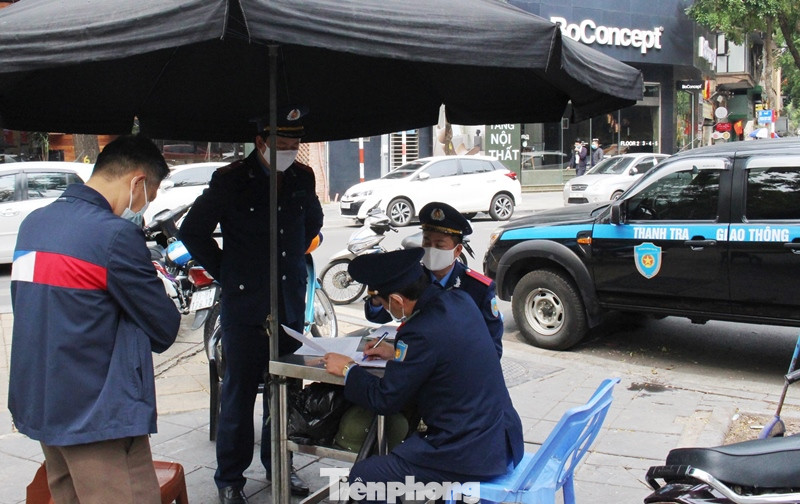 Tổ công tác đã lập biên bản vi phạm tại hiện trường và đại diện bãi trông xe trên phố Lê Thanh Tông đoạn qua ĐH Dược Hà Nội đã ký vào biên bản.