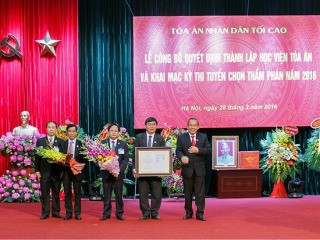 Triển khai thực hiện nội dung Nghị quyết số 49-NQ/TW của Bộ Chính trị về “Tiếp tục đổi mới nội dung, phương pháp đào tạo cử nhân luật, đào tạo cán bộ nguồn của các chức danh tư pháp, bổ trợ tư pháp; bồi dưỡng cán bộ tư pháp, bổ trợ tư pháp theo hướng cập nhật các kiến thức mới về chính trị, pháp luật, kinh tế, xã hội, có kỹ năng nghề nghiệp và kiến thức thực tiễn, có phẩm chất, đạo đức trong sạch”, TANDTC đã xây dựng Đề án thành lập Học viện Tòa án. Ngày 30/7/2015, Thủ tướng Chính phủ đã ban hành Quyết định số 1191/2015/QĐ-TTg thành lập Học viện Tòa án. Ngày 28/3/2016, TANDTC đã tổ chức Lễ ra mắt Học viện Tòa án và Khai mạc kỳ thi tuyển chọn Thẩm phán năm 2016; Công bố kế hoạch đào tạo Thẩm phán sơ cấp, Thẩm phán trung cấp, Thẩm phán cao cấp và đào tạo sau đại học. Đồng thời, Học viện Tòa án đang khẩn trương phối hợp với các cơ quan có thẩm quyền, triển khai các thủ tục cần thiết để chiêu sinh khóa Đại học Tòa án đầu tiên trong năm 2016.