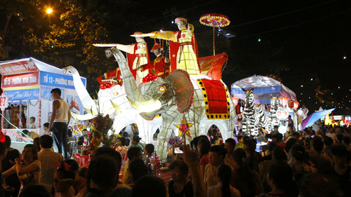 Người đến xem Trung thu đủ mọi lứa tuổi, thành phần ở các địa phương trong và ngoài tỉnh.