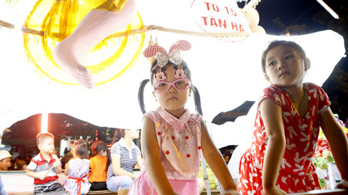Vui nhất trong đêm Trung thu vẫn là các em nhỏ. Các em đã được hóa thân vào hình tượng các chiến sỹ cảnh sát, bộ đội, hải quân và những nhân vật trong chuyện cổ tích
