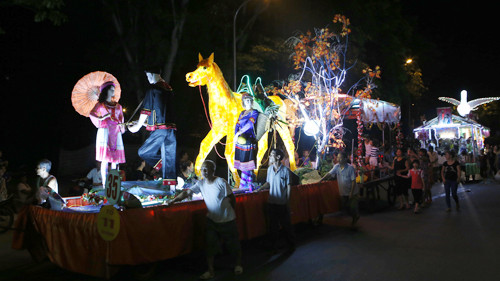 TPO - Tối 7/9, tại trung tâm thành phố Tuyên Quang, Đêm hội Thành Tuyên diễn ra với màn diễu hành 88 mô hình đèn trung thu khổng lồ, mô phỏng câu truyện cổ tích dân gian của Việt Nam do người dân Tuyên Quang tự làm.
