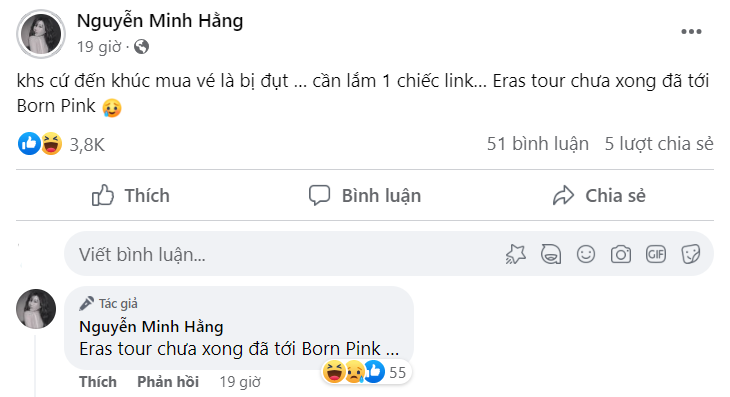 Trên trang cá nhân, Min chia sẻ bản thân cũng “chao đảo” trong việc mua vé concert của Taylor Swift và BLACKPINK. Ngày 7/7 tới có lẽ sẽ là “trận chiến tàn khốc” với Min khi cả hai buổi hòa nhạc đều được mở bán vé vào cùng ngày này.
