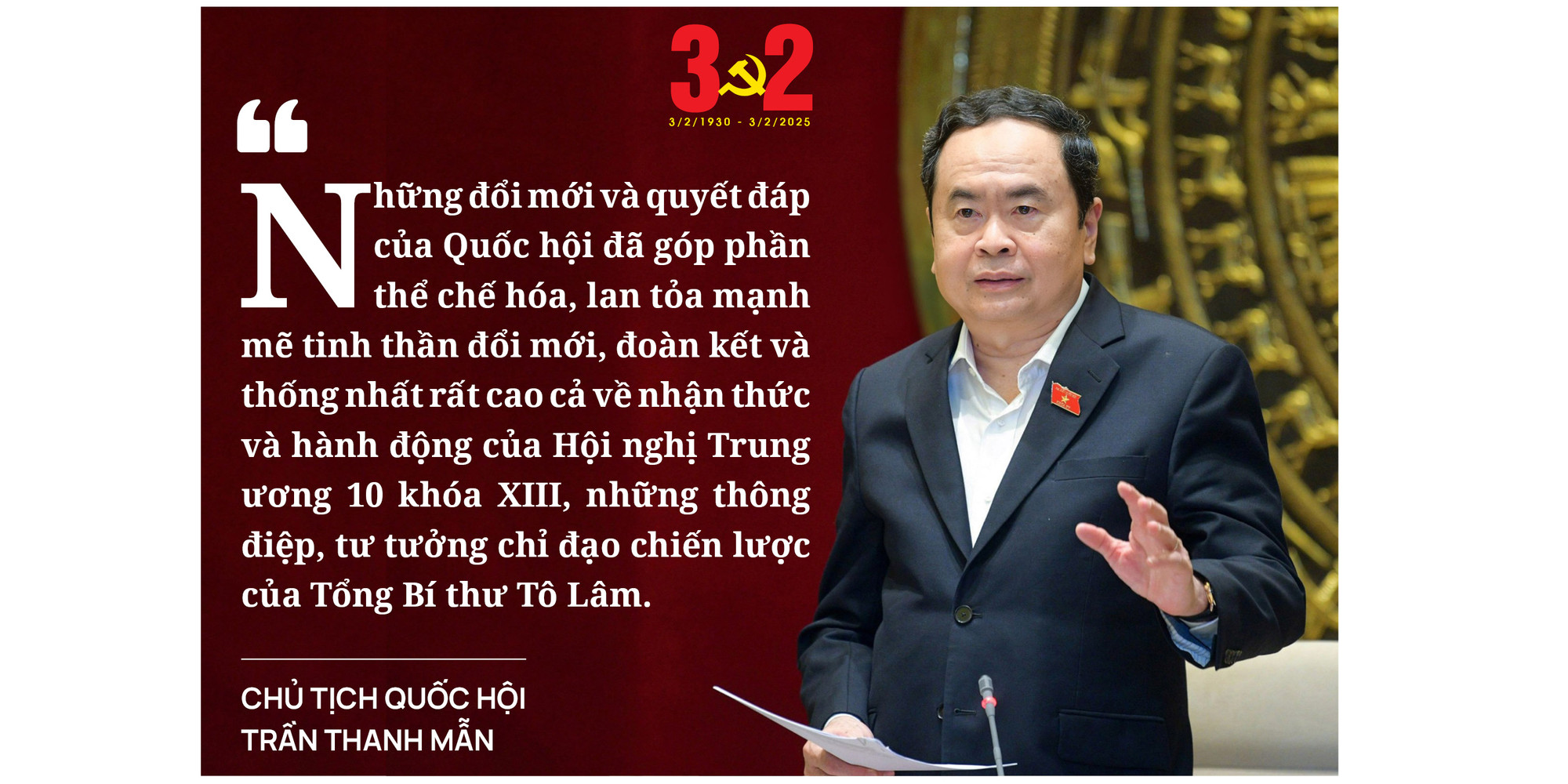 Để thể chế thực sự mang hơi thở của cuộc sống, trong các bài phát biểu của mình, Chủ tịch Quốc hội Trần Thanh Mẫn luôn nhấn mạnh, quá trình xây dựng pháp luật phải dựa trên cơ sở cụ thể hóa các chủ trương, nghị quyết của Đảng, đồng thời cần xuất phát từ thực tiễn, lấy người dân, doanh nghiệp làm trung tâm.