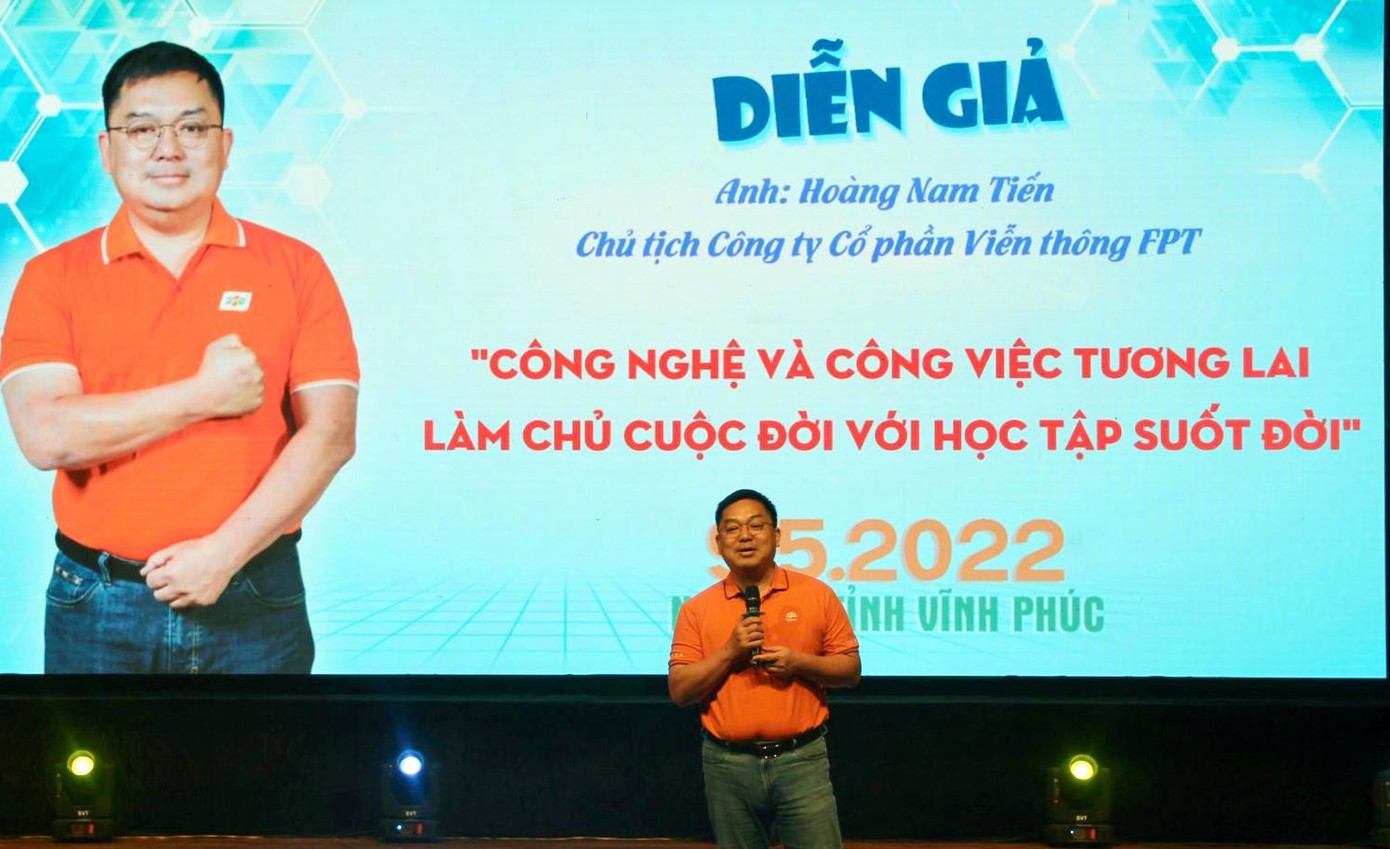 Trong chương trình đối thoại, đoàn viên thanh niên Vĩnh Phúc đã nghe ông Hoàng Nam Tiến, Chủ tịch Công ty CP Viễn thông FPT chia sẻ về nhiều thông tin về công nghệ, công việc tương lai và việc học tập suốt đời.