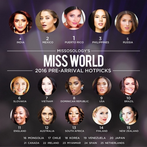 Mới đây, đại diện của Việt Nam- Trương Diệu Ngọc đã tới Mỹ để bắt đầu cuộc hành trình chinh phục chiếc vương miện Hoa hậu thế giới 2016. Tin vui cho người hâm mộ Việt khi chuyên trang sắc đẹp Missosology dự đoán, đại diện của Việt Nam sẽ lọt top 7.