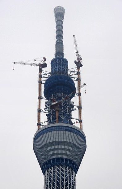Tháp Tokyo Sky Tree hiện đang xây dựng, nhưng ngày 1- 3 vừa qua đã đạt đến độ cao 601 m, vượt qua độ cao 600 m của Tháp Truyền hình Quảng Châu – Trung Quốc.