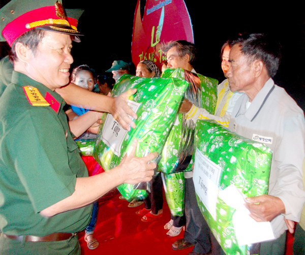Tại chương trình này, đồng chí Võ Tấn Lãm, Phó trưởng Ban Dân vận Tỉnh ủy Quảng Ngãi, cùng đại diện Quân khu V đã trao 35 phần quà, mỗi phần quà trị giá 500 nghìn đồng/xuất cho các gia đình chính sách, thương bệnh binh có hoàn cảnh khó khăn.
