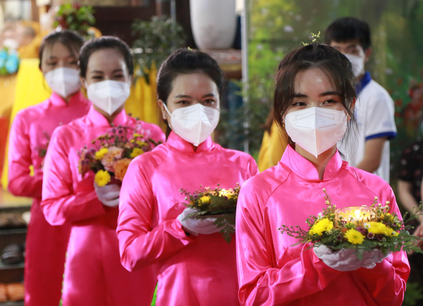 | Bạn trẻ dâng lục cúng lên Đức Phật, một trong các nghi thức mở màn buổi lễ - Ảnh: Ngô Tùng |