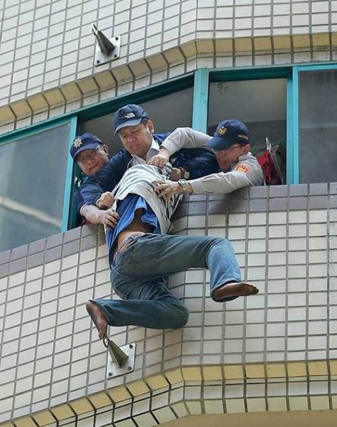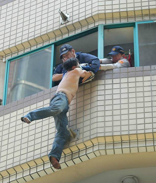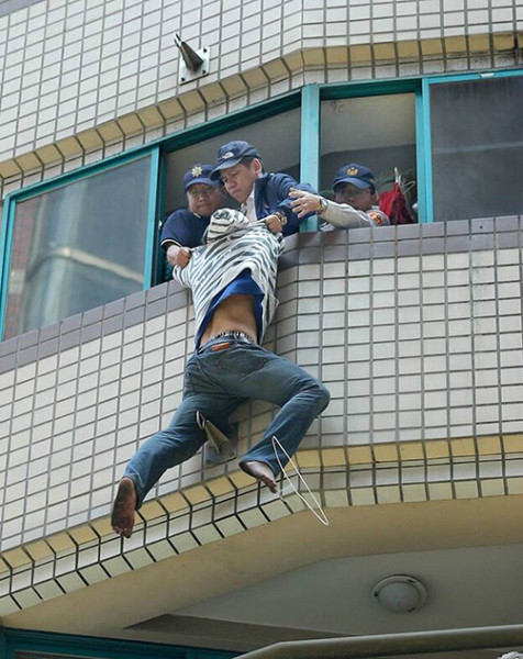 Shanghaiist đưa tin, vụ việc xảy ra hôm 6/12 tại thành phố Cao Hùng, Đài Loan (Trung Quốc). Người đàn ông tên Wu (40 tuổi) trèo ra bờ tường tầng 6 một tòa nhà và dọa sẽ nhảy xuống “kết liễu cuộc đời” vì không còn tình yêu. Sự việc khiến tất cả mọi người đều hoảng loạn.