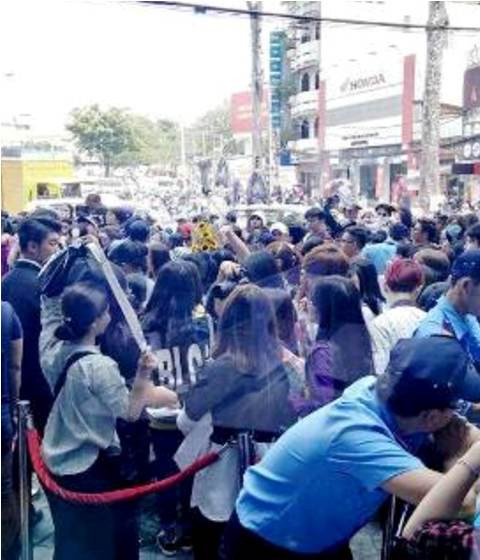 Cụ thể trong ngày 15/3, khi nhóm T-Ara đi quảng bá cho các cửa hàng điện thoại mới khai trương trên đường 3/2 (TP.HCM), có hàng ngàn fan theo chân, đứng tràn ra cả mặt đường gây tắc nghẽn giao thông suốt một quãng dài của nhiều con đường như CMT8, Võ Thị Sáu, Lý Chính Thắng, Nguyễn Phúc Nguyên gần Ngã sáu Dân Chủ.