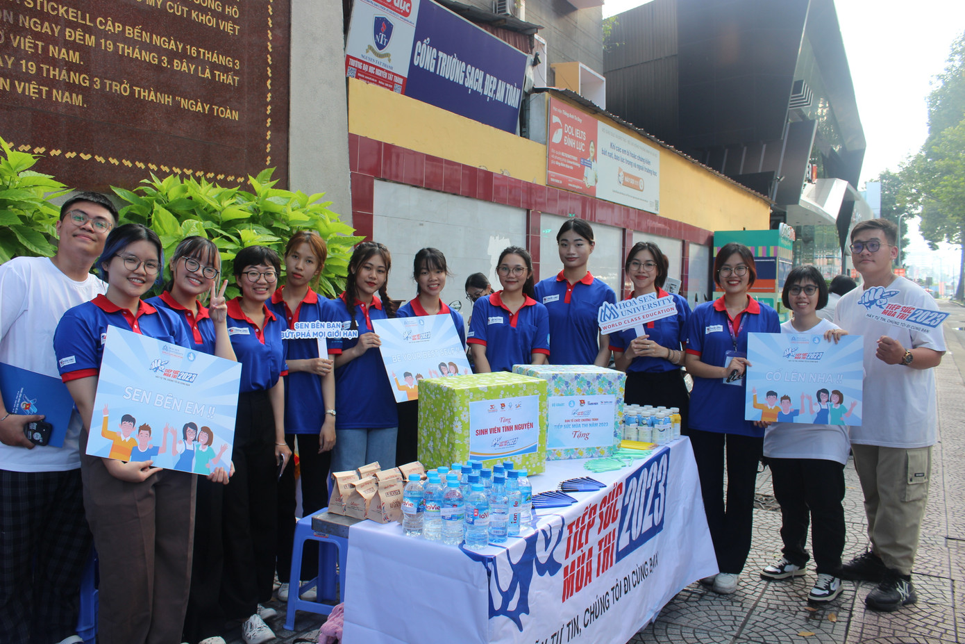 | Các chiến sĩ "Tiếp sức mùa thi" tại điểm trường THPT Ten Lơ Man (Q. 1). |
