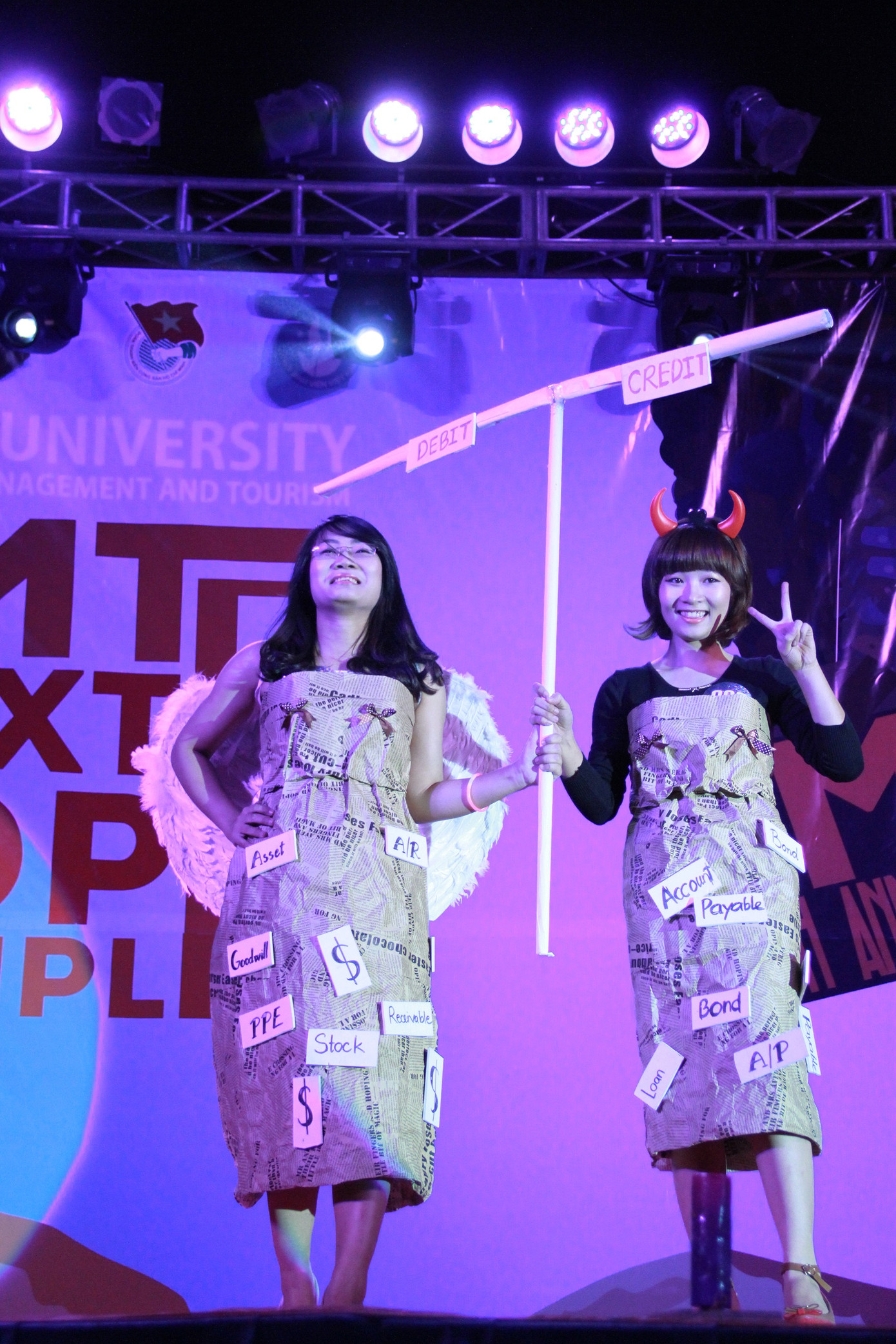 | Tiết mục thời trang kinh dị đến từ các khoa Quản trị Kinh doanh, Du lịch, Tài chính- Ngân hàng và Kế toán. |