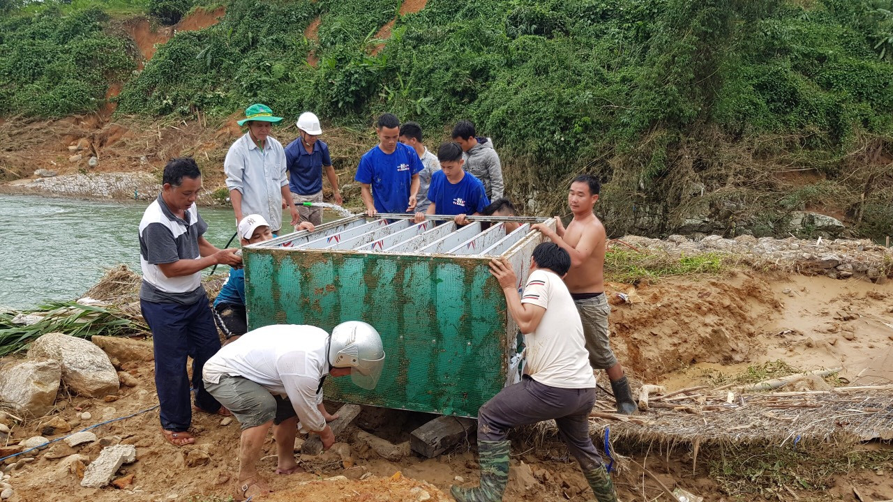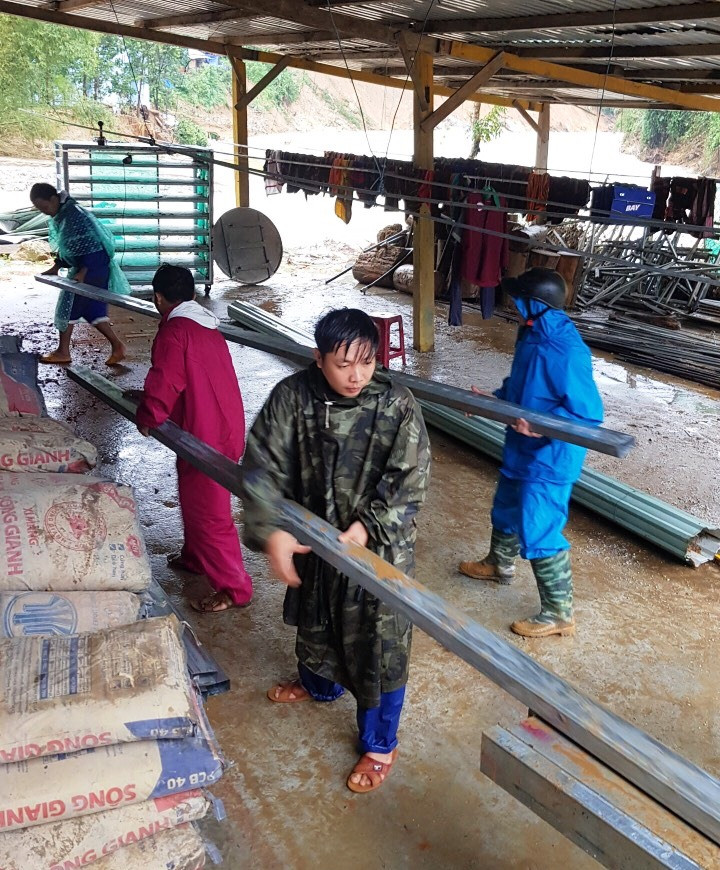 Vật dụng của nhà trường bị trôi xuống sông, các thầy cô tìm đưa về.