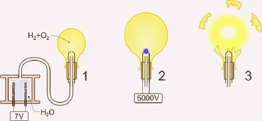Phản ứng này theo tỷ lệ số mol hydro và oxy là 2:1 sẽ gây nổ. Ở điều kiện phòng (áp suất 1atm và khoảng 27,3 độ C), phản ứng này làm áp suất khí sau phản ứng tăng gấp gần 3,5 lần. Đó là lý do mà sức công phá của những vụ nổ khí hydro là cực lớn.