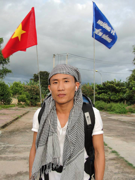 Võ Mạnh Tuấn trên đường ra Bắc để đi bộ xuyên Việt. Ảnh do nhân vật cung cấp.