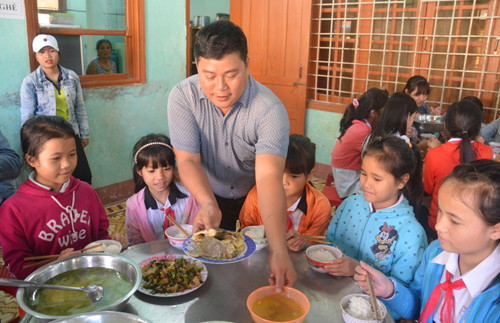 Đến tầm trưa, bữa ăn học sinh bán trú trường Trà Mai bày sẵn, như bao ngày thầy hiệu trưởng xuống nhà ăn kiểm tra chất lượng. Ở vùng cao, trẻ con đến trường không phải chuyện dễ. Chúng đến lớp vài bữa lại nghỉ học theo cha mẹ lên nương rẫy. Các em đến trường được hưởng chế độ miễn học phí, mỗi tháng được nhận hỗ trợ tương đương 40% mức lương cơ sở để trang trải việc học.