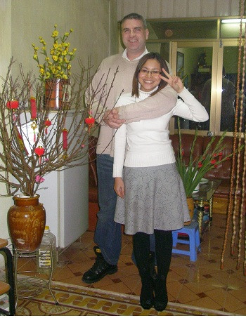 Theo chị Lan Anh, do vợ chồng đến từ hai nền văn hóa, mỗi năm gia đình lại đón hai cái Tết lớn. Cuối năm dương lịch, cả nhà mua cây thông và cùng nhau trang trí thật rực rỡ. Không khí Tết Tây chưa kịp hết thì gia đình đã lại rộn ràng cắm hoa đào đón Tết ta. Do vậy, mùa Tết kéo dài hơn bình thường trong ngôi nhà ấm cúng của vợ chồng nhà giáo.