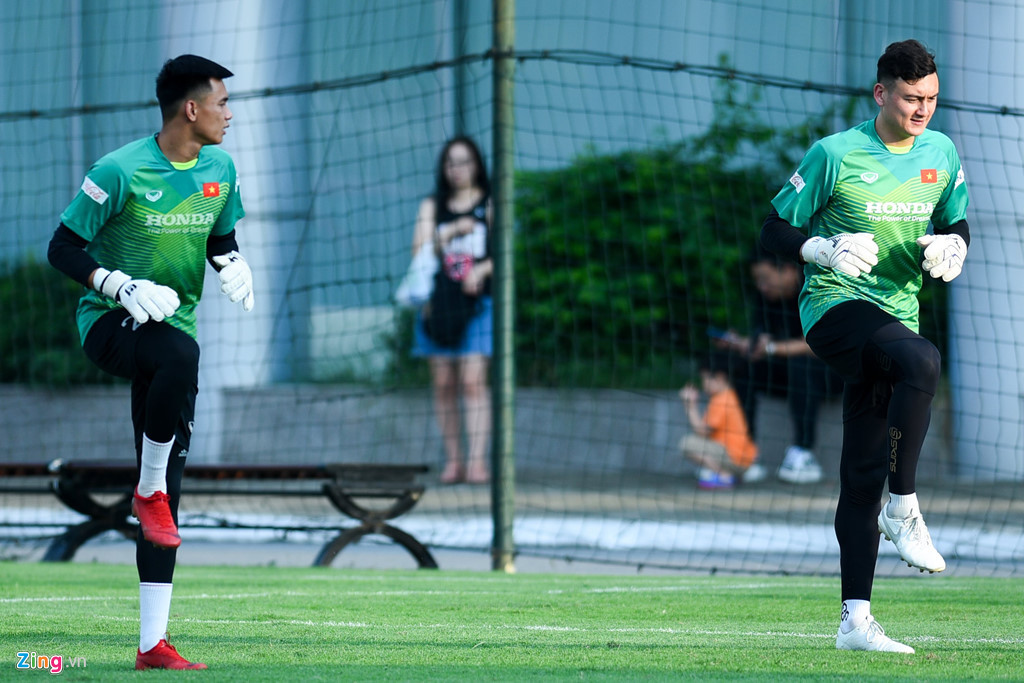 Buổi tập này cũng chào đón sự trở lại của thủ thành Văn Lâm. Anh đã hoàn thành nhiệm vụ ở CLB Muangthong United và trở lại Việt Nam cách đây không lâu. Nguyễn Tuấn Mạnh và Phạm Văn Cường là 2 thủ môn còn lại trong danh sách rút gọn của chiến lược gia người Hàn Quốc.