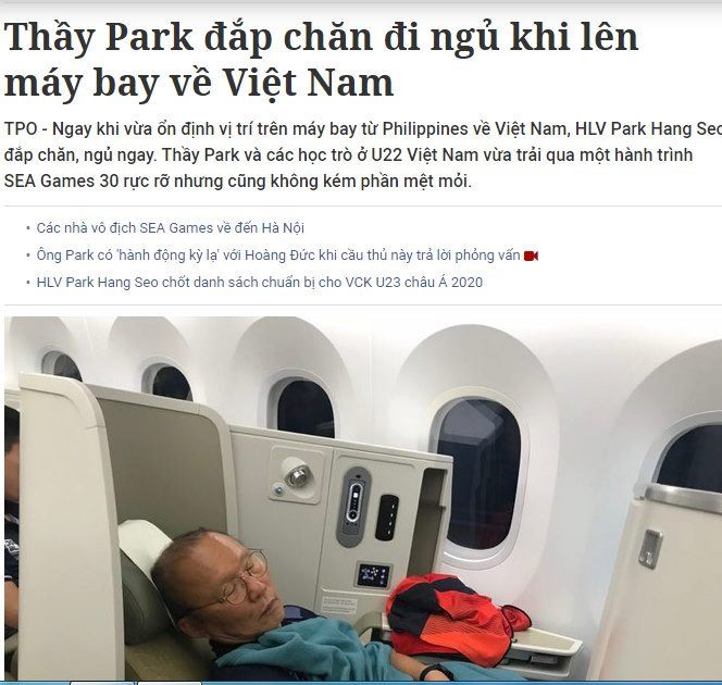 Báo Tiền Phong khẳng định, bức ảnh trên do đối tượng giấu mặt nào đó ác ý, photoshop chỉnh sửa rồi phát tán trên mạng xã hội. Tít bài: “Thầy Park nhắm mắt khi ngủ trên chuyến bay về Việt Nam” chưa bao giờ xuất hiện trên báo điện tử Tiền Phong.