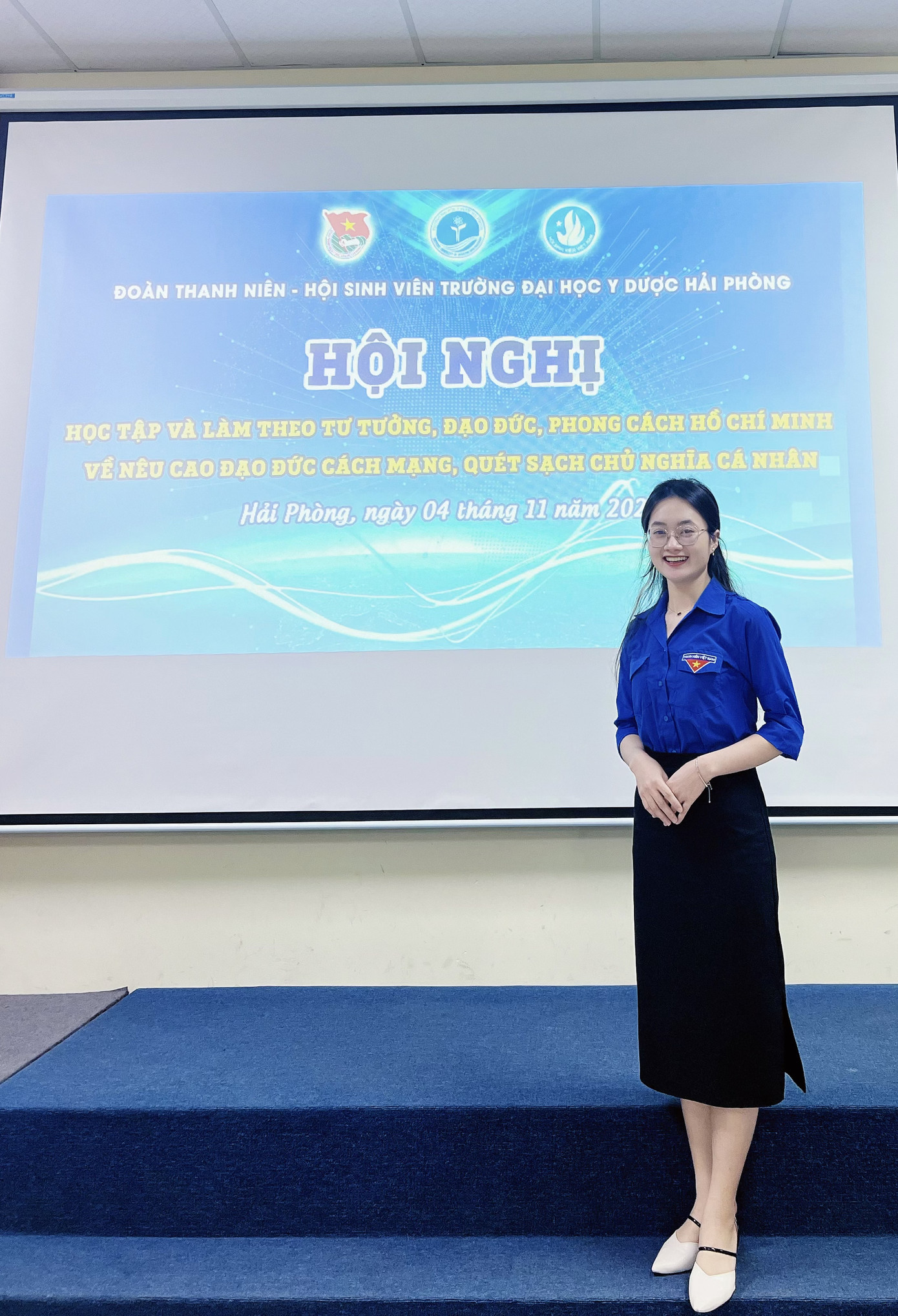Chia sẻ về quãng thời gian tham gia Đoàn - Hội, cô nói: “Rất may mắn khi mình có cơ hội hoạt động trong môi trường Đoàn - Hội. Tại đây mình thấy bản thân trưởng thành và chín chắn hơn từng ngày, mình có cơ hội tham gia rất nhiều chương trình, hoạt động có ý nghĩa như: Cơm 3K chia sẻ tình thân; Tết Đoàn Viên - Đồng hành cùng người bệnh; Tiếp sức mùa thi - hậu cần y tế; Giọt hồng blouse trắng; Khám chữa bệnh tình nguyện; Chương trình chào Tân sinh viên; Ngày hội việc làm; Những buổi hội thảo chuyên ngành của các khoa,... và rất nhiều hoạt động khác.