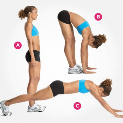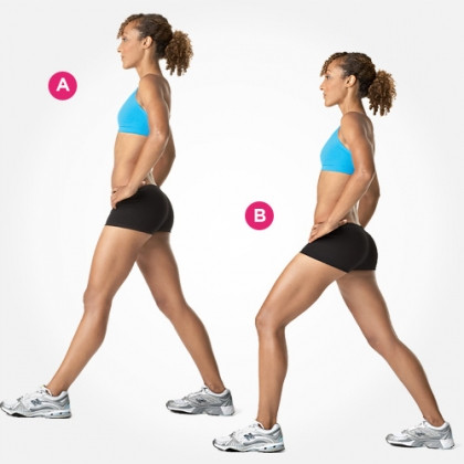 Động tác 7: Hai chân dang rộng hơn vai, hai tay đặt lên hông. Từ từ hạ thấp người, hai gối co lại cho đến khi bắp đùi song song với sàn. Lặp lại động tác 12-15 lần. Động tác này giúp bạn tập luyện được các cơ bên trong săn chắc.