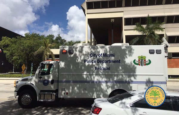 Trên trang Twitter, giới chức Sở Cảnh sát Miami cho biết gói đồ trên được phát hiện bên ngoài tòa nhà lúc 10 giờ (giờ địa phương), đồng thời đăng tải một bức ảnh chụp xe của đội phá bom gần tòa nhà và yêu cầu người dân tránh xa khu vực này.
