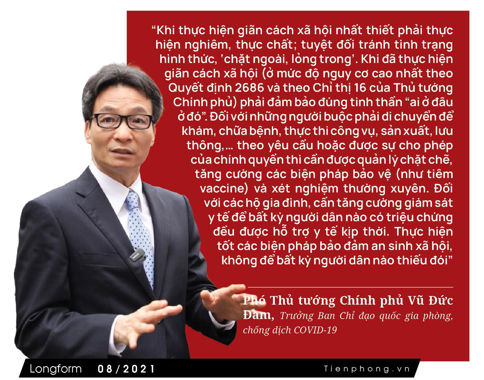 Chính phủ và các bộ, ngành, các địa phương đã đưa ra nhiều giải pháp, đáng chú ý nhất là thực hiện giãn cách xã hội theo Chỉ thị số 16/CT-TTg19 tại 19 tỉnh/thành phố phía Nam. Thủ đô Hà Nội cũng đã áp dụng biện pháp này từ 24/7.