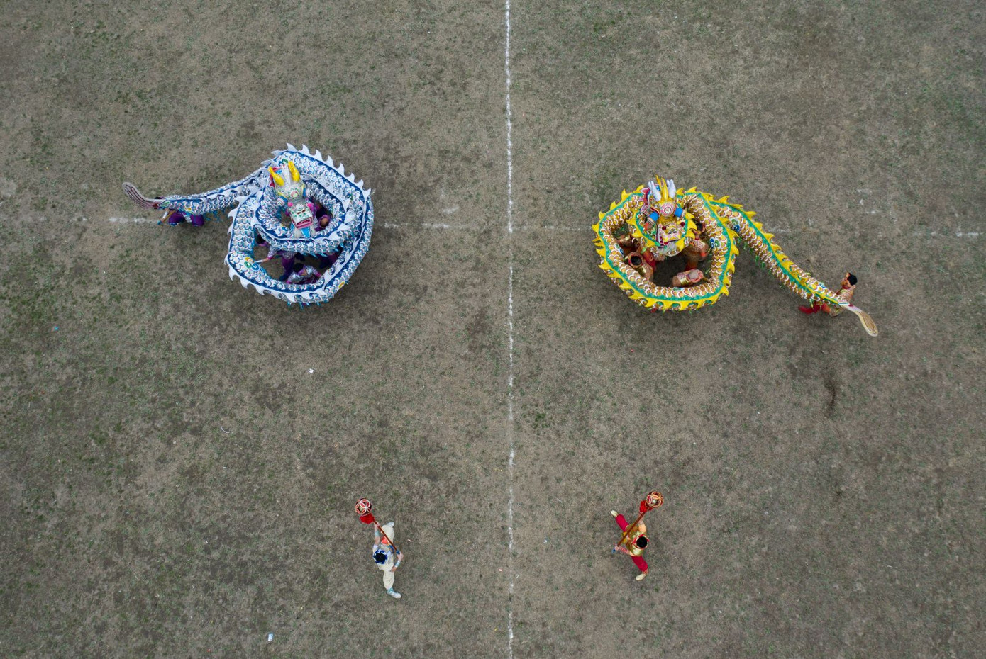 Các nghệ sĩ dân gian biểu diễn một điệu múa rồng ở Langzhong, tỉnh Tứ Xuyên của Trung Quốc. Ảnh: Tân Hoa Xã