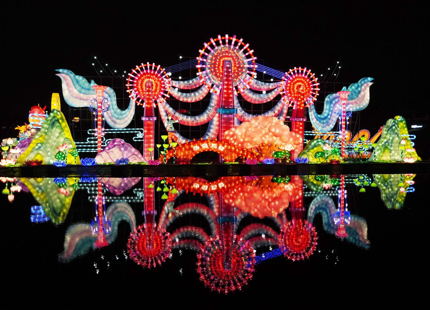 Đèn lồng được chiếu sáng trong một chương trình trên núi Qingxiu ở Nam Ninh, khu tự trị dân tộc Choang Quảng Tây của Trung Quốc. Ảnh: Tân Hoa Xã