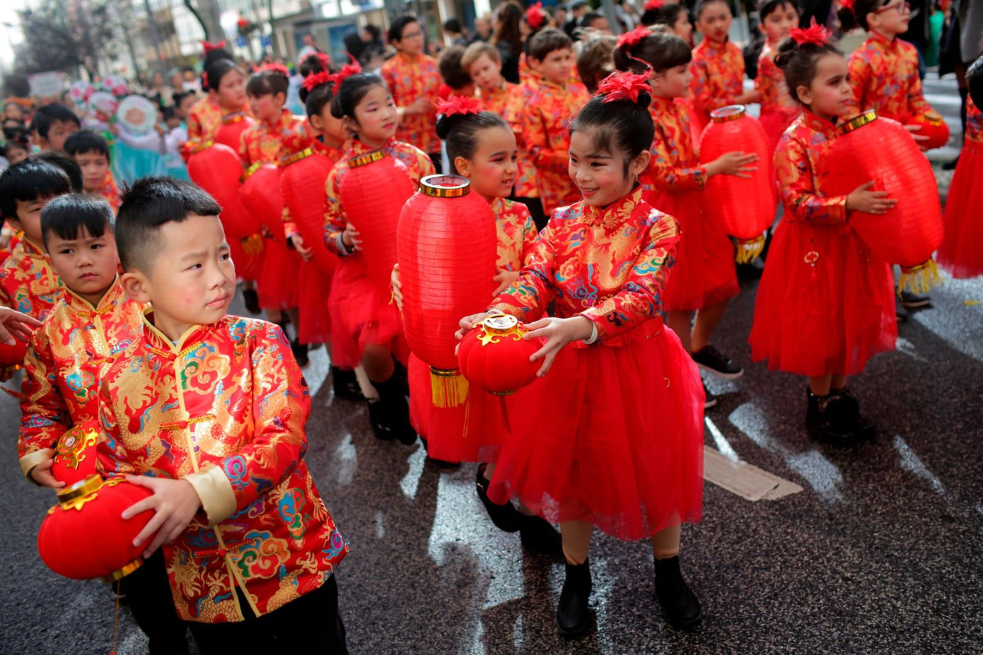Trẻ em cầm đèn lồng trong khi tham gia một cuộc diễu hành bắt đầu lễ mừng năm mới của Trung Quốc tại Lisbon, Bồ Đào Nha. Ảnh: AP