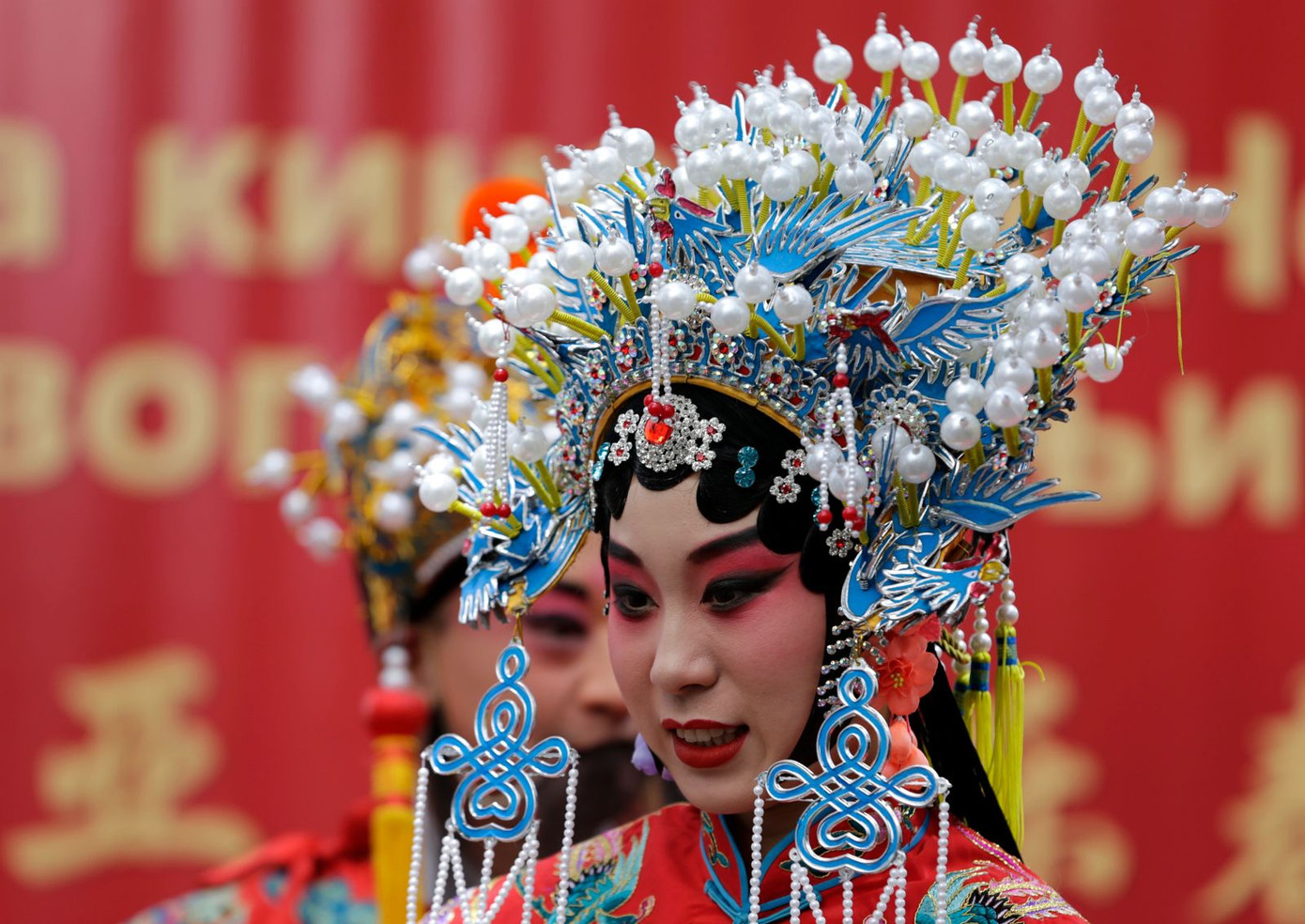 Một nghệ sĩ biểu diễn mặc trang phục truyền thống của Trung Quốc tham dự các lễ hội ở Belgrade, Serbia. Ảnh: EPA-EFE