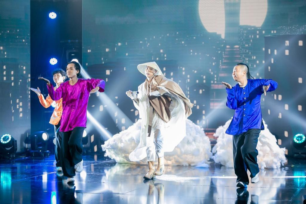 Trên sân khấu The Heroes, “Ông Bụt thất nghiệp" Quân A.P xuất hiện cùng chiếc nón lá, tay cầm phất trần. Phần rap với flow cuốn hút, mới mẻ giúp chủ nhân hit Bông Hoa Đẹp Nhất thành công "lấy lòng" dàn master The Heroes.