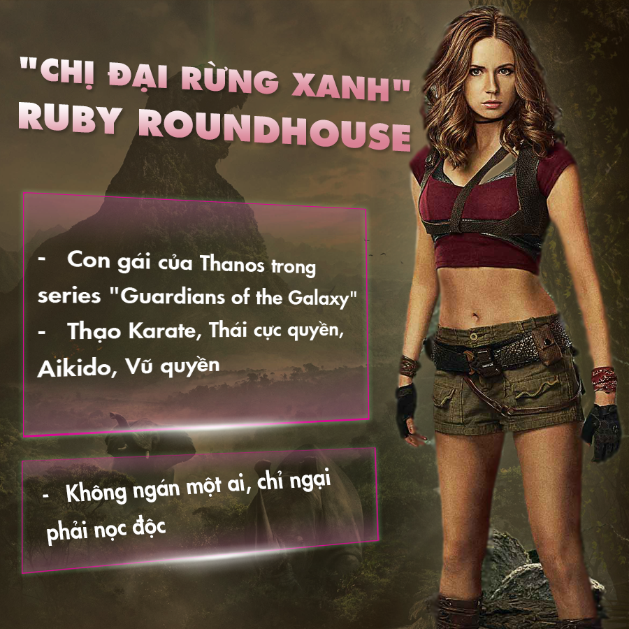 Trong khi đó, Karen Gillan lại trở thành thế thân trong game của cô nàng cộc tính Martha (Morgan Turner). Nhân vật của Gillan là nữ chiến binh Amazon dũng mãnh Ruby Roundhouse. Đây là vai nữ duy nhất trong game với khả năng chiến đấu bền bỉ. Ruby Roundhouse thông thạo nhiều loại võ từ Karate, Thái cực quyền, Aikido cho đến Vũ quyền.