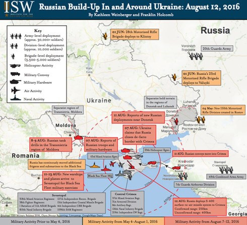 Các hoạt động quân sự của Nga quanh Ukraine đã gia tăng từ tháng 5-2016 khi Bộ trưởng Quốc phòng Nga Sergei Shoigu công bố việc lập thêm 3 sư đoàn mới ở các quân khu phía tây và phía nam.