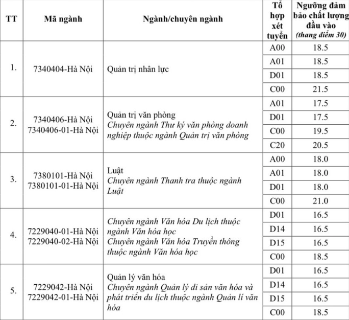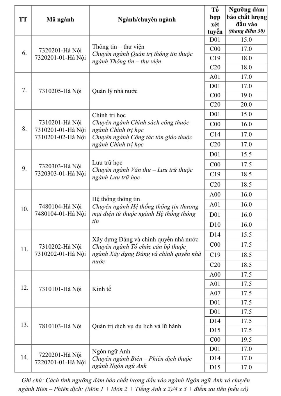 Học viện Hành chính Quốc gia cũng vừa thông báo ngưỡng đảm bảo chất lượng đầu vào đại học hình thức chính quy theo kết quả thi tốt nghiệp THPT năm 2023.