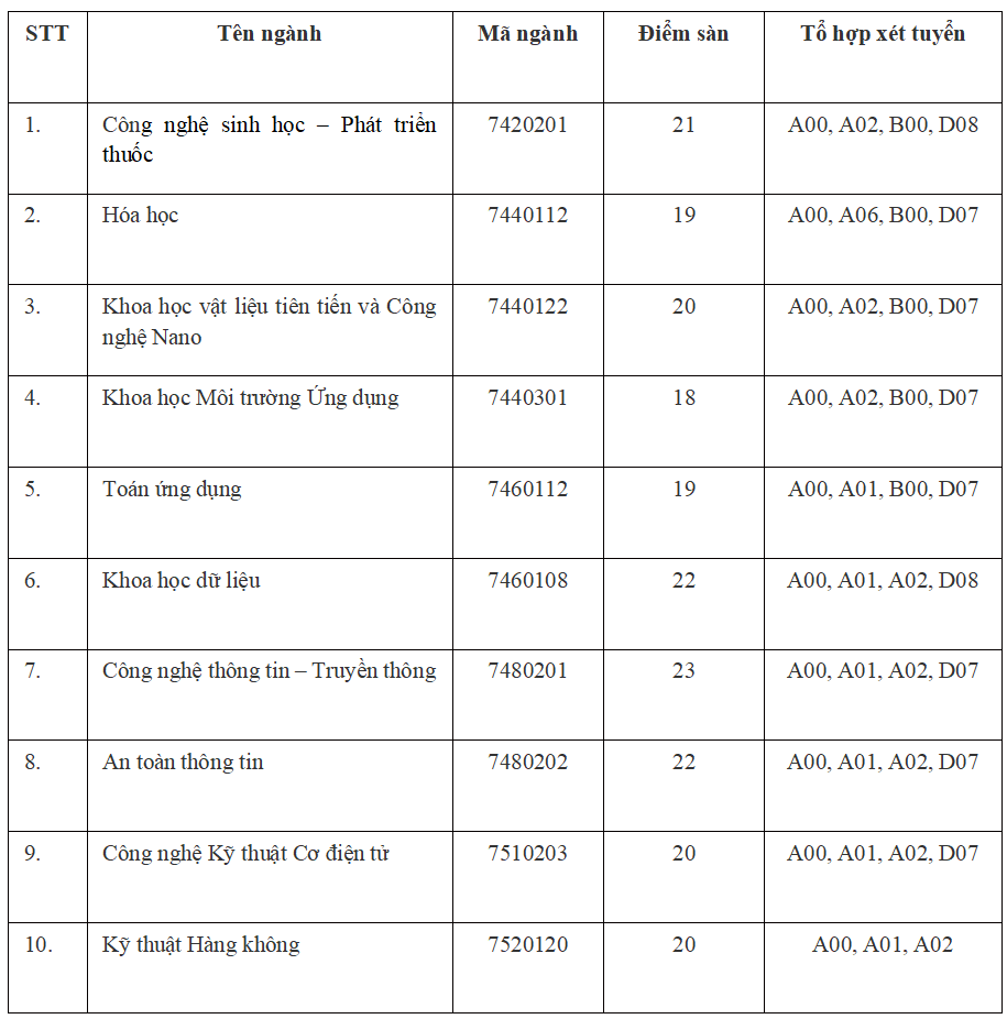 Trường ĐH Khoa học và Công nghệ Hà Nội (USTH) vừa công bố điểm sàn xét tuyển (ngưỡng đảm bảo chất lượng đầu vào) cho các ngành đào tạo trình độ đại học năm 2023.