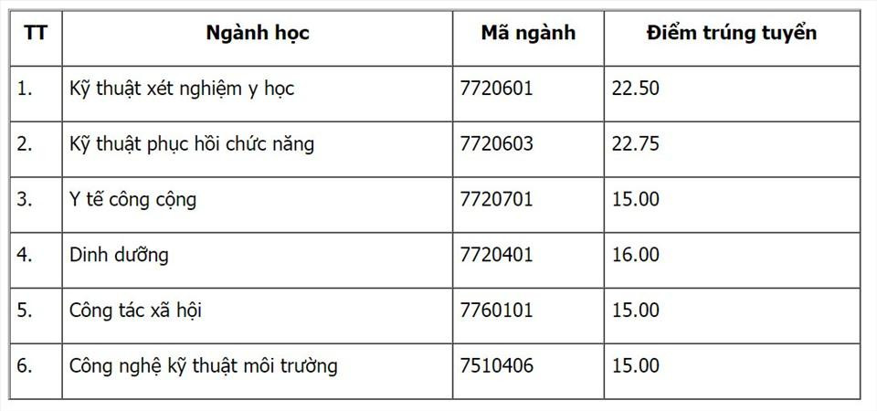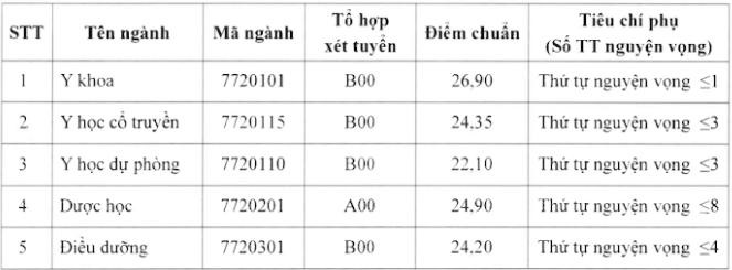 Ngành Y học cổ truyền có điểm chuẩn là 24,35; Điều dưỡng có điểm chuẩn là 24,2, trong khi Y học dự phòng là 22,1 điểm.