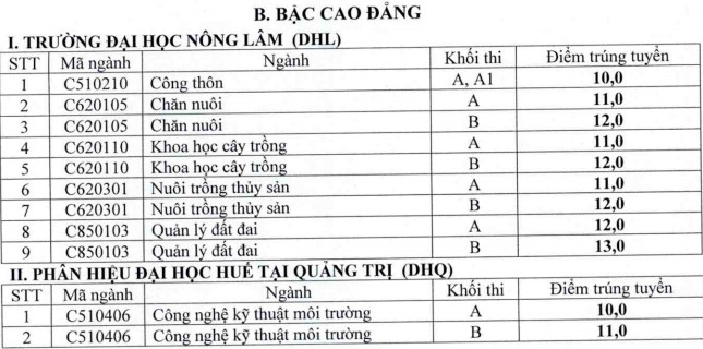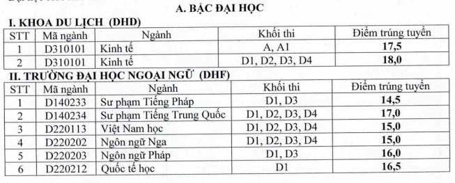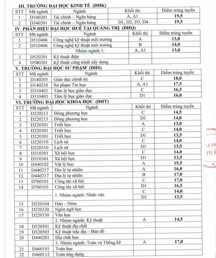 ĐH Huế cũng vừa công bố điểm chuẩn NV2.