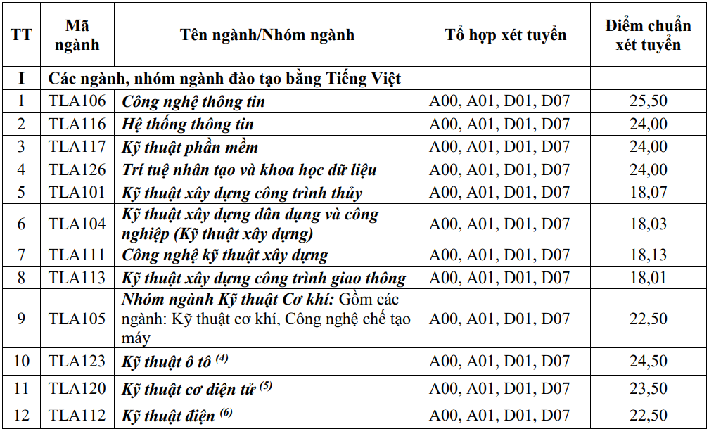 Điểm chuẩn xét tuyển học bạ của Đại học Thủy Lợi: