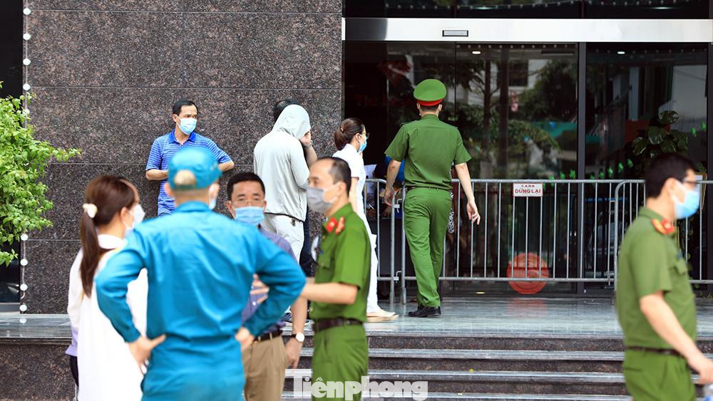 | Ngay sau khi toàn bộ chung cư bị phong toả, lực lượng chức năng túc trực để kiểm soát đảm bảo cách ly nghiêm ngặt. |
