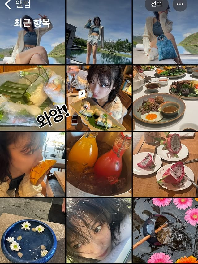 Nữ diễn viên đình đám cũng cũng không quên tận hưởng ẩm thực Việt Nam, ăn món gì đều chụp ảnh để khoe trên mạng xã hội. Từ gỏi cuốn đến các loại trái cây quen thuộc như xoài, thanh long, nước ép hoa quả… đều được Kim Yoo Jung yêu thích. Còn netizen đều tấm tắc khen Việt Nam cảnh đẹp, đồ ăn ngon nên sao Hàn nào tới đây cũng xả vai quên cả giữ hình tượng.