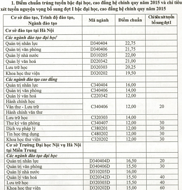 ĐH Nội vụ cũng vừa công bố điểm trúng tuyển vào trường. Theo đó, điểm chuẩn các ngành dao động từ 15 đến 22,75 điểm với hệ đại học.