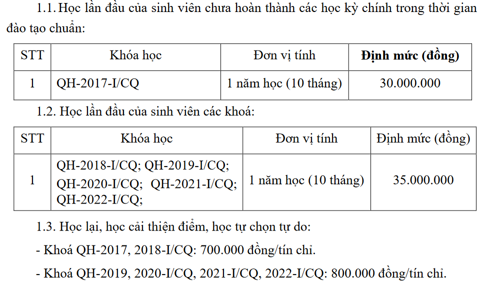 Hiệu trưởng trường Đại học Công nghệ - Đại học Quốc gia Hà Nội đã ra quyết định về việc quy định, định mức học phí đào tạo đại học, sau đại học năm học 2022-2023.