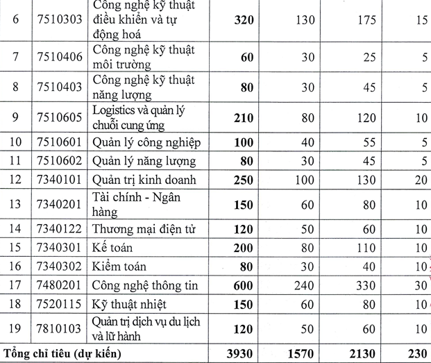| Tổng chỉ tiêu dự kiến | 1150 chỉ tiêu, trong đó: - Đào tạo sư phạm: Dự kiến 500 chỉ tiêu - Đào tạo ngoài sư phạm: Dự kiến 650 chỉ tiêu | |||
