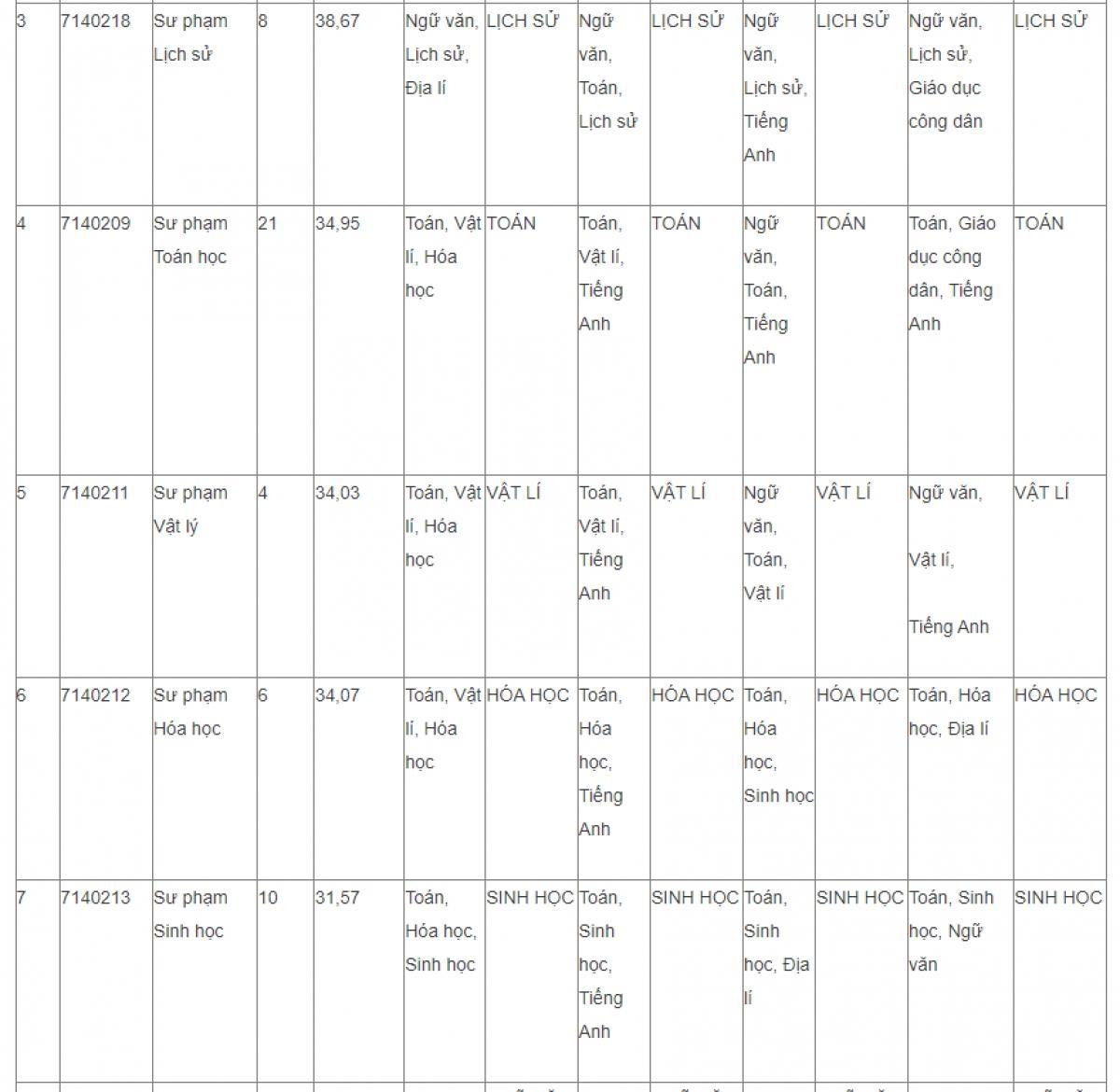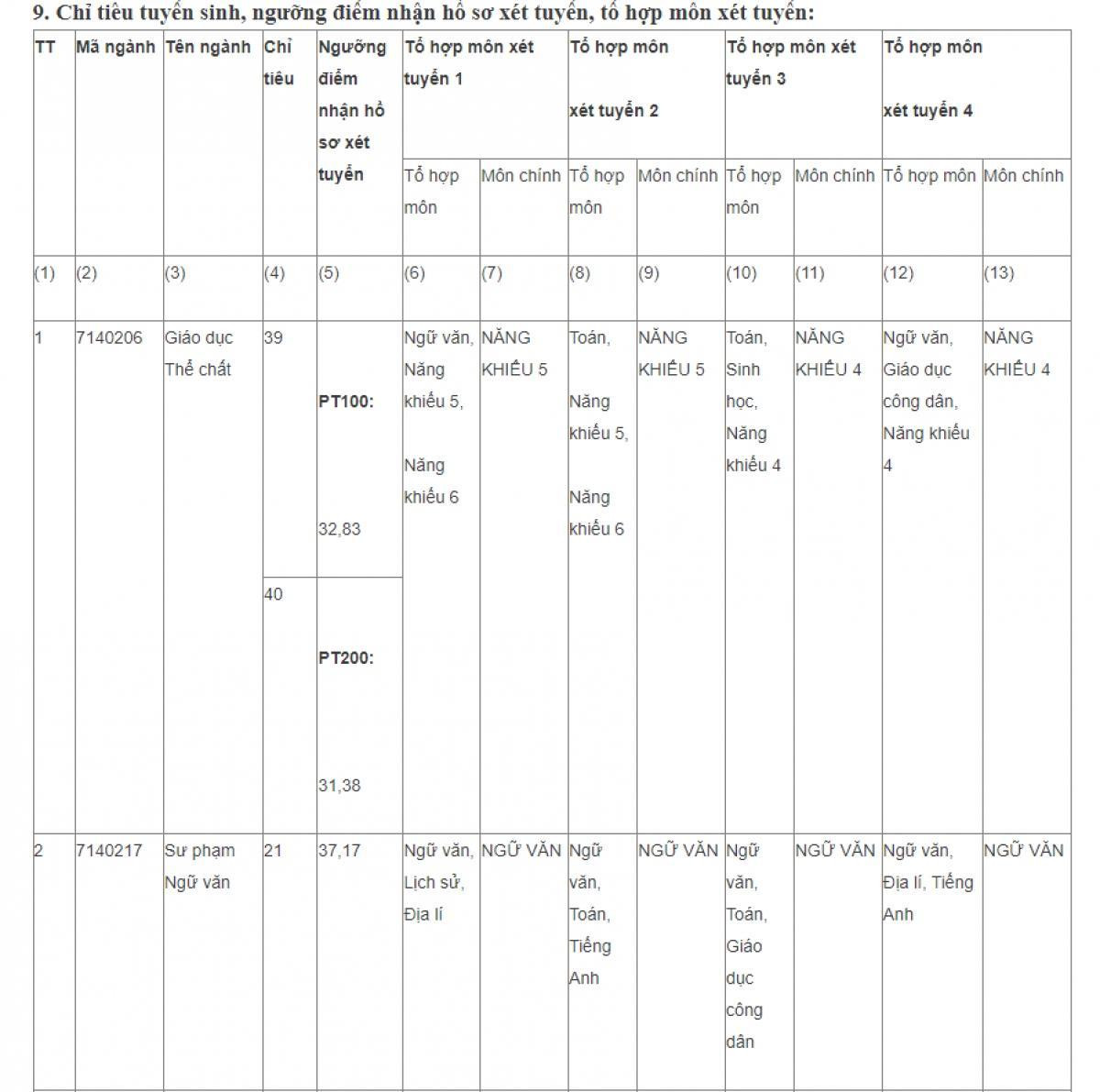 Chỉ tiêu và ngưỡng điểm nhận hồ sơ các ngành như sau:
