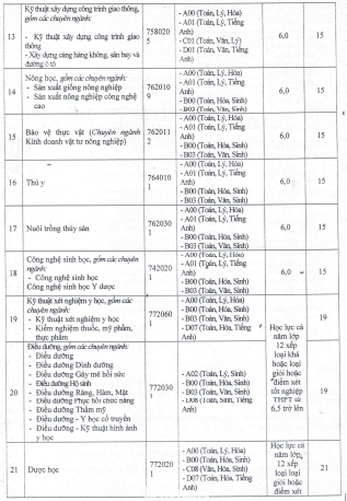 Theo đó, ngoại trừ các ngành khối sức khỏe điểm sàn theo quy định của Bộ GD&ĐT, các ngành còn lại Trường ĐH Cửu Long lấy 15 điểm. Điểm sàn cụ thể như sau: