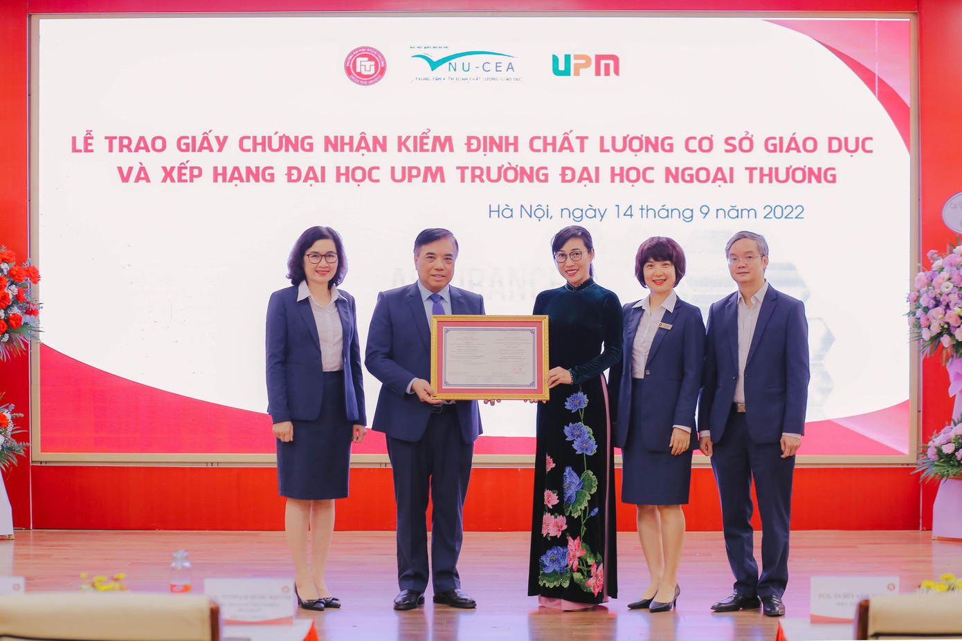 Năm 2022, Trường ĐH Ngoại thương đăng ký tham gia xếp hạng đối sánh theo Bộ tiêu chuẩn của UPM và đã đạt kết quả ở mức 5 sao theo định hướng ứng dụng. Trong đó, tiêu chuẩn: Quản trị chiến lược, Đào tạo, Nghiên cứu khoa học và phục vụ cộng đồng đều đạt chuẩn 5 sao.