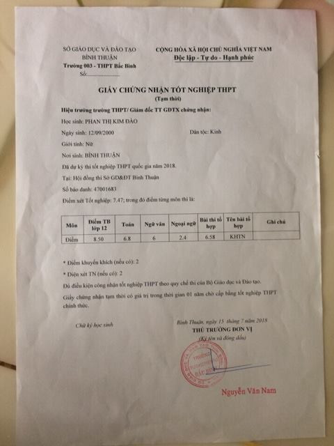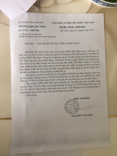 Trước bất ngờ này, ông Chung cho biết, gia đình đã làm đơn gửi đến Sở GD&ĐT Bình Thuận, trường đại học Y khoa Phạm Ngọc Thạch để mong cứu xét.